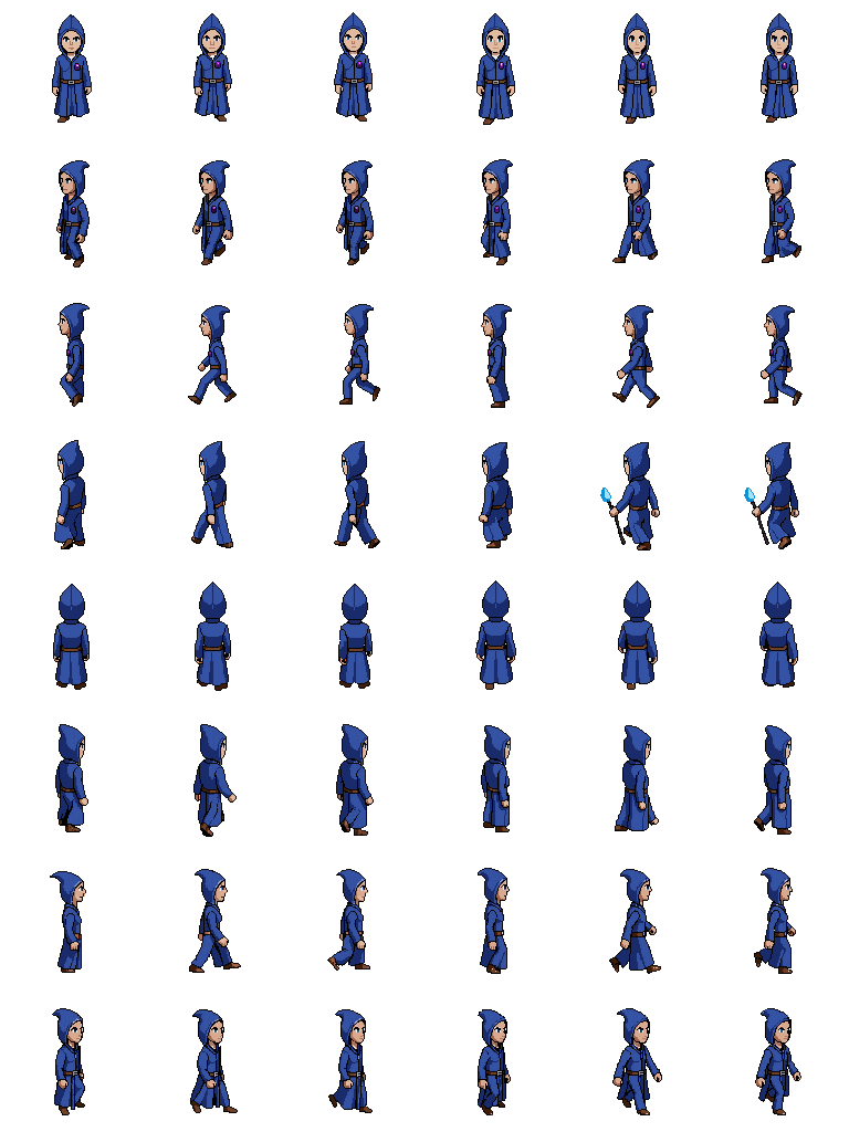 Blue Wizard — Sprite Sheet & Animations | FreePixel | FreePixel — Free Pixel Art for Game Developers